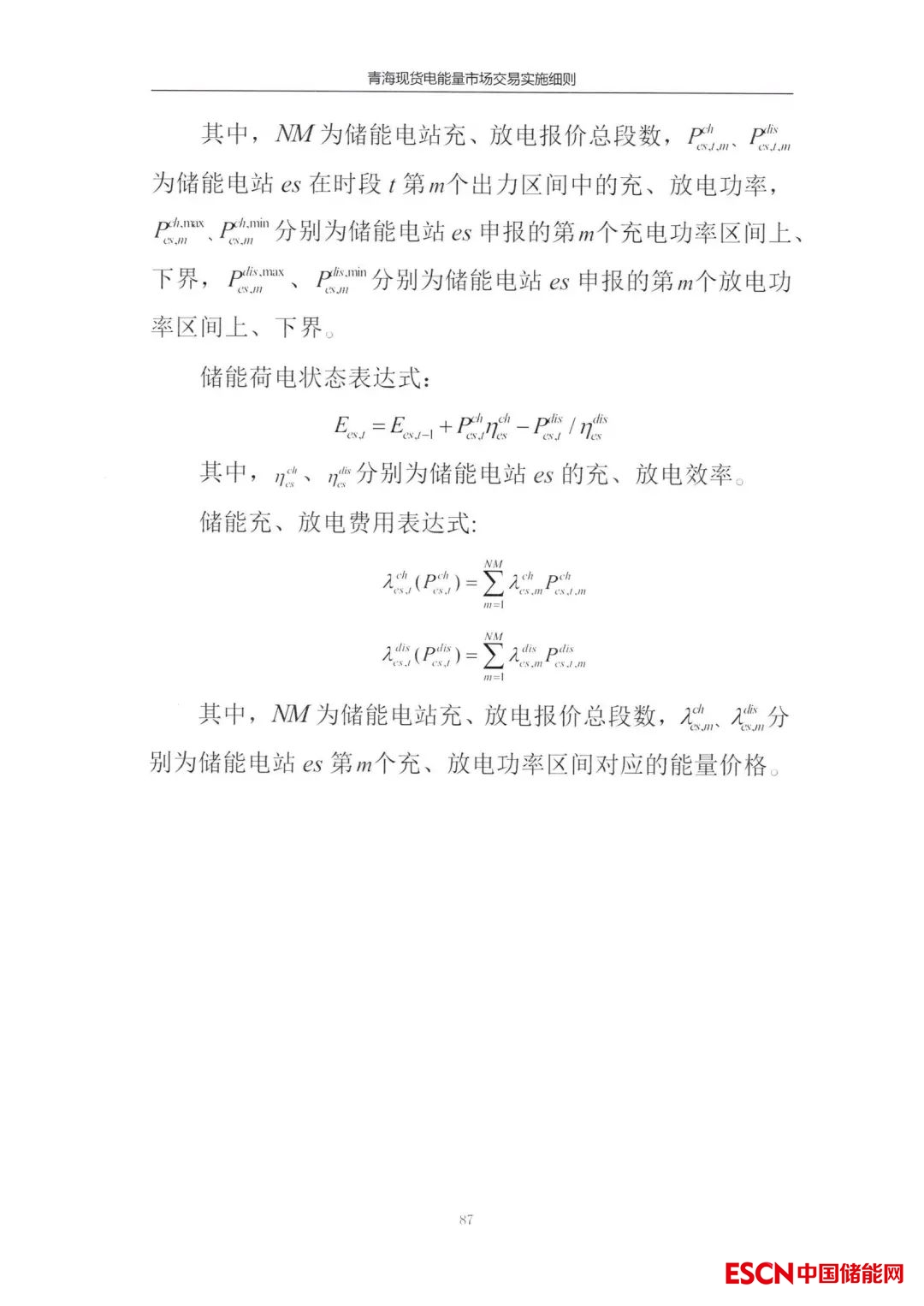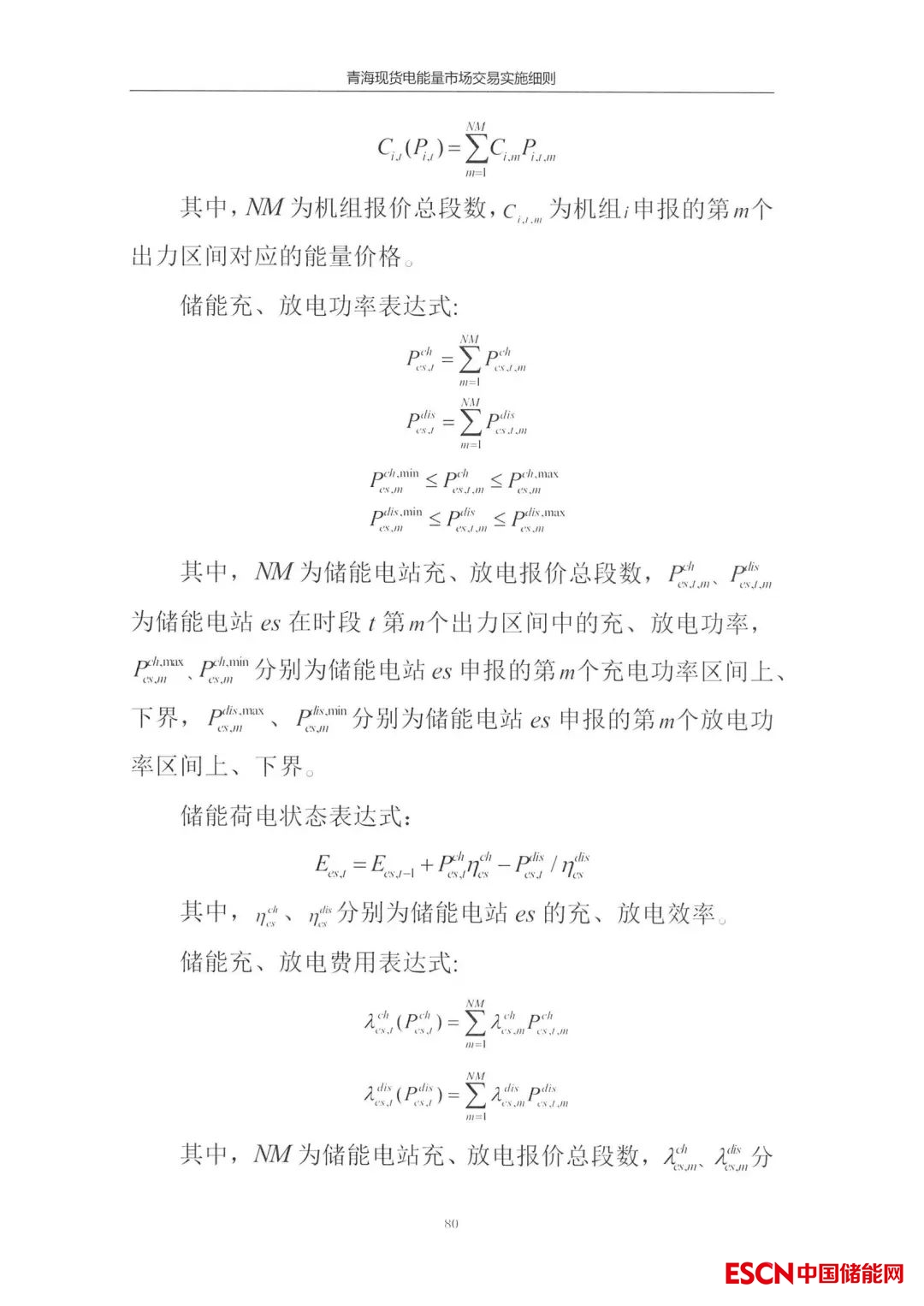 其中,儲(chǔ)能電站作為發(fā)電和用電的結(jié)合體,以“報(bào)量報(bào)價(jià)”方式參與市場(chǎng),自主決策申報(bào)充電狀態(tài)的量價(jià)曲線(1-5段,現(xiàn)貨價(jià)格低于報(bào)價(jià)時(shí)充電)和放電狀態(tài)的量價(jià)曲線(1-5段,現(xiàn)貨價(jià)格高于報(bào)價(jià)時(shí)放電) , 存儲(chǔ)電量狀態(tài)SOC等。儲(chǔ)能電站與其他市場(chǎng)主體同臺(tái)競(jìng)爭(zhēng),其申報(bào)納入市場(chǎng)出清,以經(jīng)濟(jì)最優(yōu)為原則調(diào)用儲(chǔ)能。