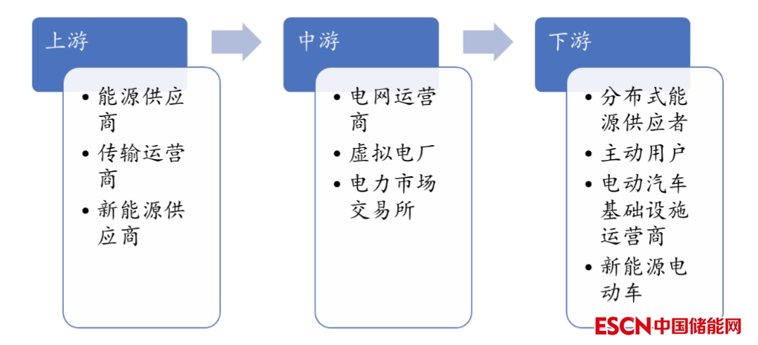 虛擬電廠的產(chǎn)業(yè)鏈結(jié)構(gòu)由上游基礎(chǔ)資源、中游系統(tǒng)平臺(tái)、下游電力需求方構(gòu)成。