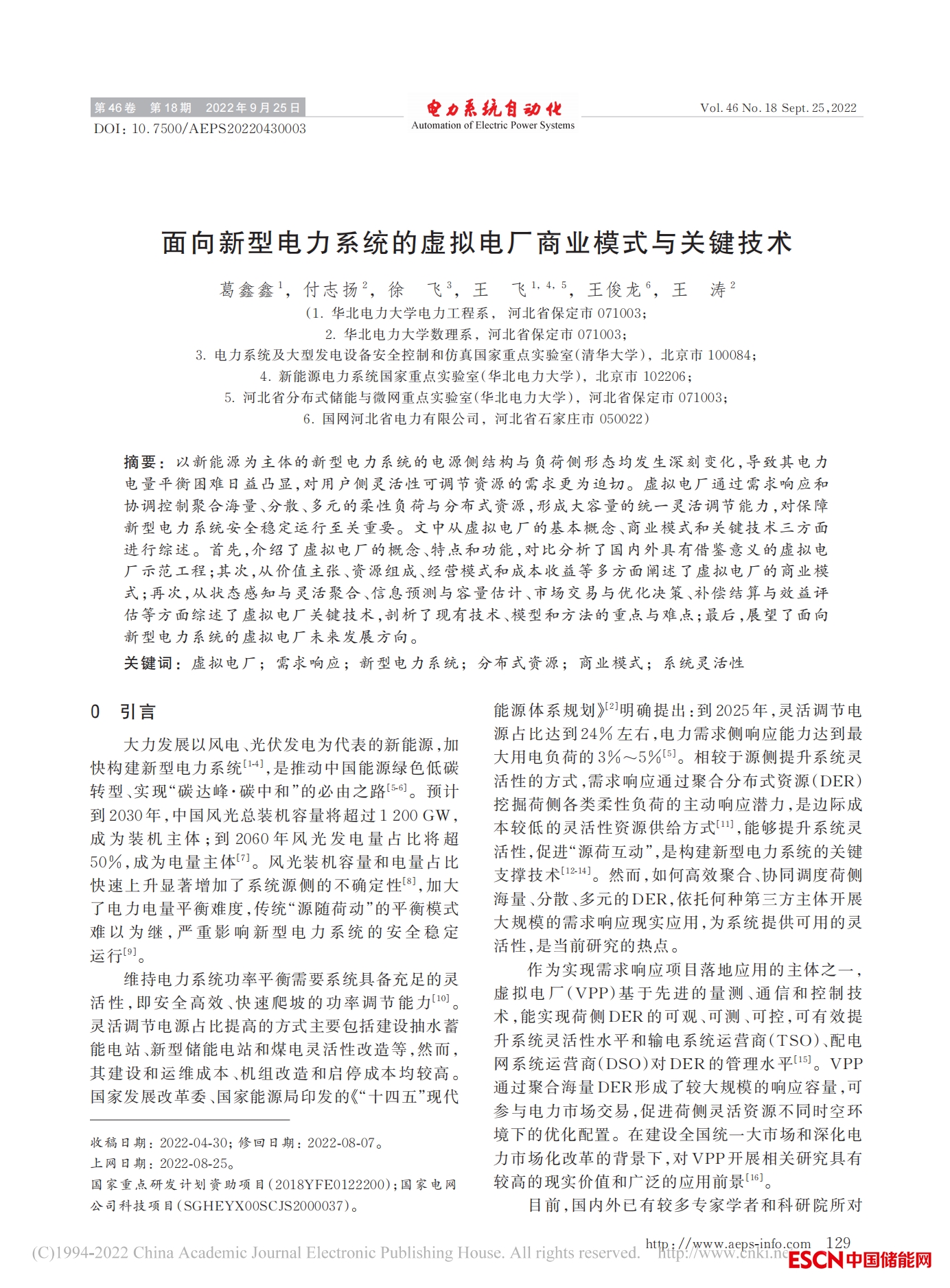 面向新型電力系統(tǒng)的虛擬電廠商業(yè)模式與關(guān)鍵技術(shù)