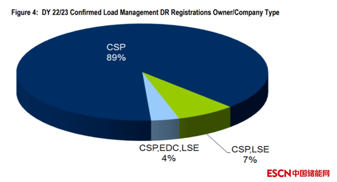 在PJM市場(chǎng),想要參與需求響應(yīng)的用戶必須先與一家CSP建立代理關(guān)系,CSP可以為用戶提供必要的設(shè)備和軟件系統(tǒng)以進(jìn)行需求響應(yīng),這要求CSP擁有一些基礎(chǔ)設(shè)施并充分了解所有批發(fā)市場(chǎng)規(guī)則和流程,以挖掘市場(chǎng)機(jī)會(huì)。CSP聚合各類用戶的需求響應(yīng)資源在PJM市場(chǎng)上進(jìn)行報(bào)價(jià),并將獲取的收益與用戶進(jìn)行分成。CSP可以是一家只專注于需求響應(yīng)業(yè)務(wù)的公司,也可以是售電公司(load-serving entities,LSEs),還可以是當(dāng)?shù)氐呐潆娋W(wǎng)運(yùn)營(yíng)商(electric distribution companies,EDCs)。目前接近9成的CSP都是專注需求響應(yīng)業(yè)務(wù)的專業(yè)公司。