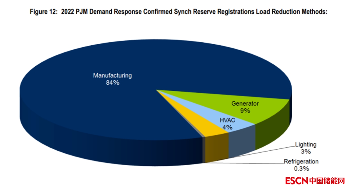 而對(duì)于同步備用市場(chǎng),大約85%的需求響應(yīng)資源參與方式是通過(guò)調(diào)整工業(yè)生產(chǎn),其他手段還有通過(guò)調(diào)節(jié)發(fā)電設(shè)備或者暖通、制冷設(shè)備。