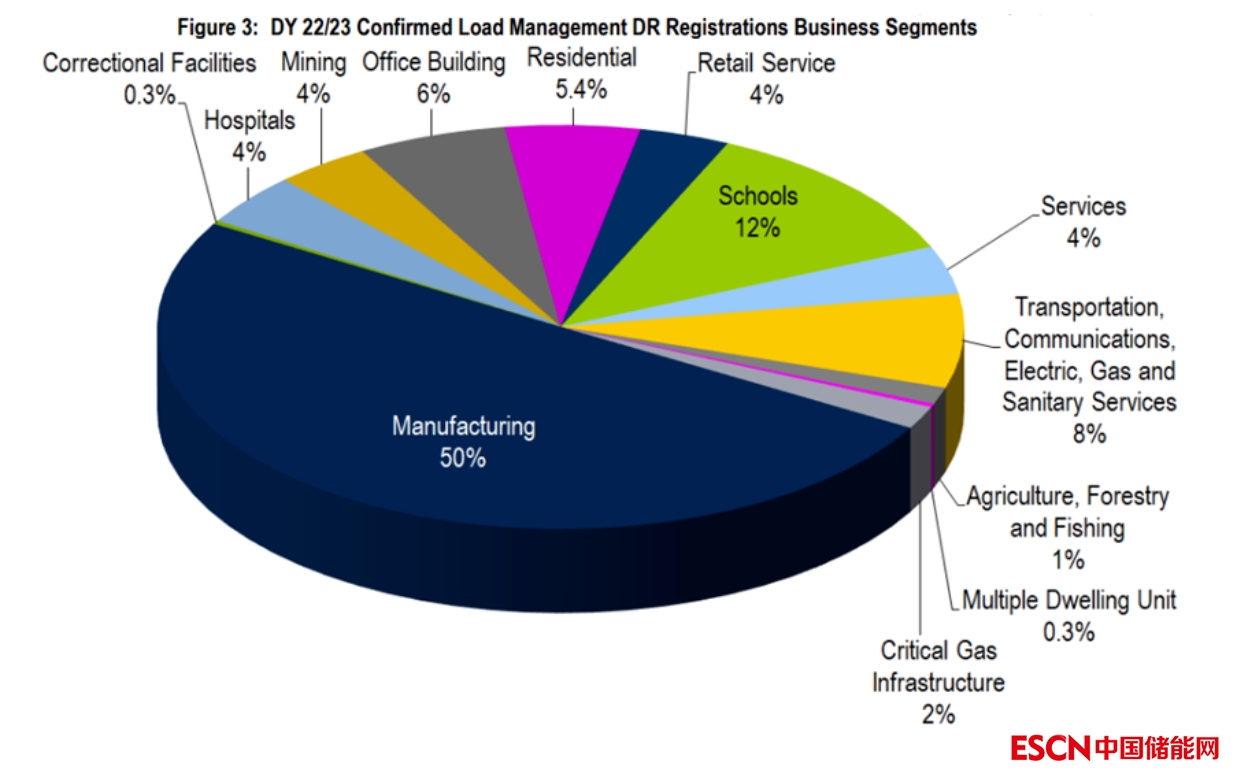 按用戶類型分,參與需求響應(yīng)的用戶有一半為工業(yè)用戶,其余占比較高的為學(xué)校用戶、商業(yè)樓宇、居民用戶等。