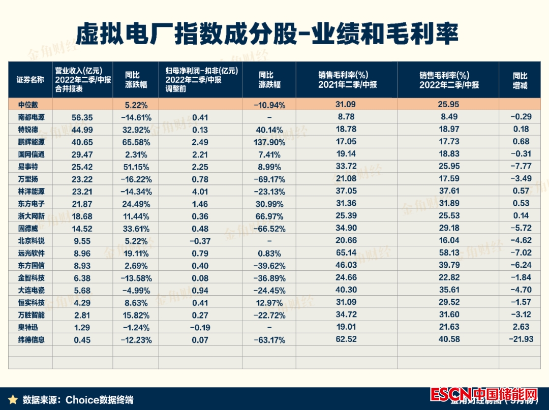 按今年中報數(shù)據(jù)看,整體情況并不理想。虛擬電廠指數(shù)19個成分股里,營業(yè)收入同比增長的中位數(shù)僅有5.22%;扣非后歸母凈利潤同比增長的中位數(shù)為-10.94%;毛利率中位數(shù)由去年同期31.09%下跌至25.95%。