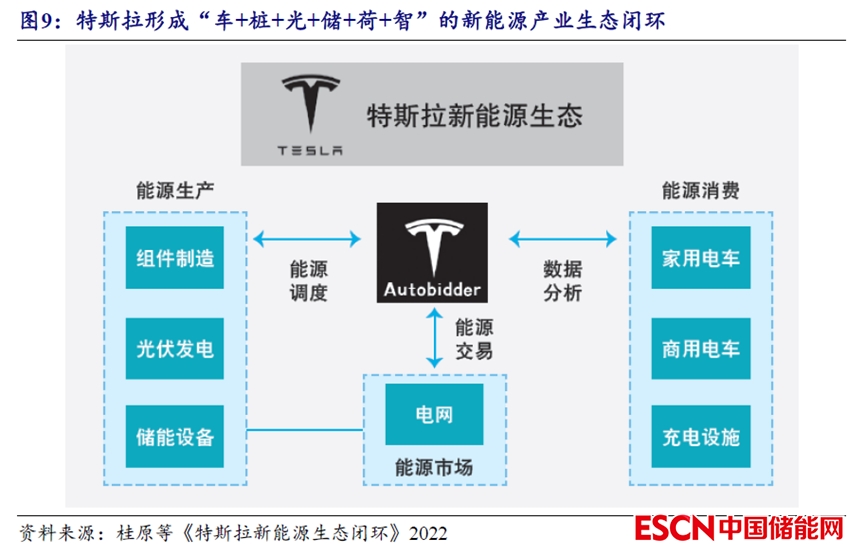 特斯拉在電動汽車業(yè)務(wù)取得突破后,開始進(jìn)軍儲能項目開發(fā)、光伏和儲能設(shè)備制造、光伏發(fā)電運(yùn)營等領(lǐng)域,并發(fā)展虛擬電廠智能平臺Autobidder,實現(xiàn)了在交易端與公用電網(wǎng)的連接。
