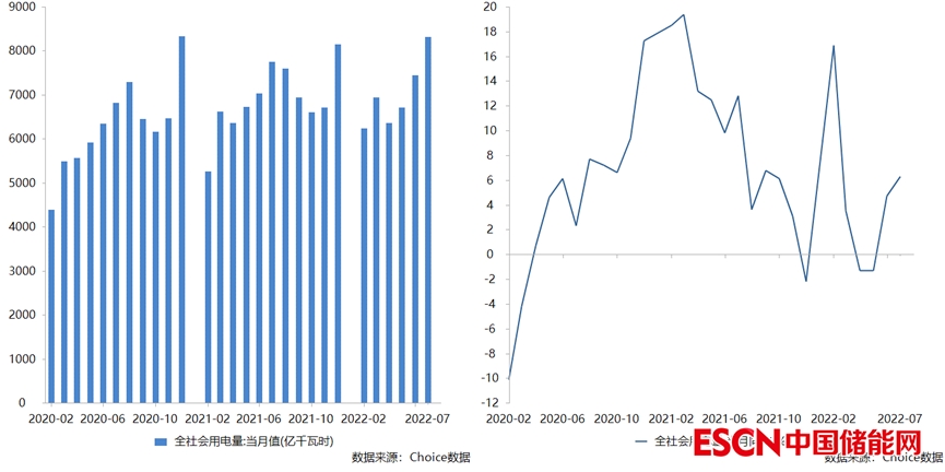 據(jù)國家能源局?jǐn)?shù)據(jù),2022年7月份全社會用電量為8324億千瓦時,2021年和2020年同期分別為7758億千瓦時和6824億千瓦時。
