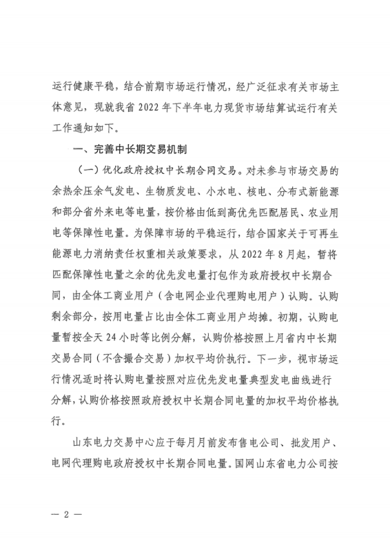 中國(guó)儲(chǔ)能網(wǎng)訊:6月30日,山東正式印發(fā)《關(guān)于2022年山東省電力現(xiàn)貨市場(chǎng)結(jié)算試運(yùn)行工作有關(guān)事項(xiàng)的補(bǔ)充通知》,《通知》要求,進(jìn)一步擴(kuò)大市場(chǎng)主體范圍,推動(dòng)將優(yōu)先發(fā)購電計(jì)劃轉(zhuǎn)化為政府授權(quán)中長(zhǎng)期合同,未參與市場(chǎng)交易的余熱余壓余氣發(fā)電、生物質(zhì)發(fā)電、小水電、核電、分布式新能源和部分省外來電等電量,按價(jià)格由低到高優(yōu)先匹配居民、農(nóng)業(yè)用電等保障性電量。穩(wěn)妥推進(jìn)新能源參與電力市場(chǎng)交易,推動(dòng)構(gòu)建由市場(chǎng)形成新能源價(jià)格的電價(jià)機(jī)制,以差價(jià)合約形式參與電力市場(chǎng)交易,支持新能源項(xiàng)目與配套建設(shè)儲(chǔ)能聯(lián)合作為一個(gè)發(fā)電企業(yè)主體參與市場(chǎng)結(jié)算。