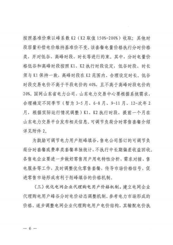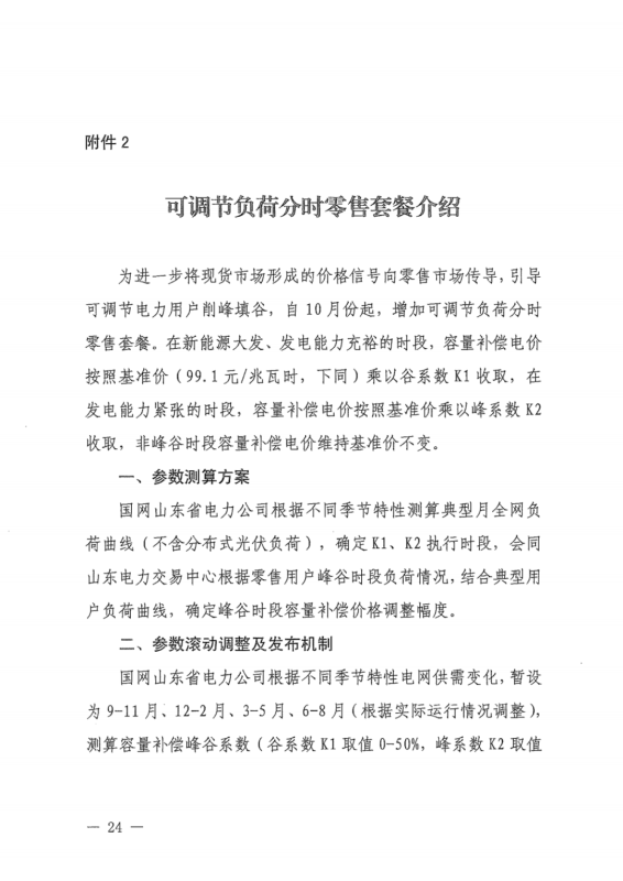 另外需要注意的是,該文件創(chuàng)新性的提出可調(diào)節(jié)負(fù)荷分時(shí)零售套餐。即在新能源大發(fā)、發(fā)電能力充裕的時(shí)段,容量補(bǔ)償電價(jià)按照基準(zhǔn)價(jià)(99.1元/兆瓦時(shí),下同)乘以谷系數(shù)K1(K1取值0-50%)收??;在發(fā)電能力緊張的時(shí)段,容量補(bǔ)償電價(jià)按照基準(zhǔn)價(jià)乘以峰系數(shù)K2(K2取值100%-160%)收取。
