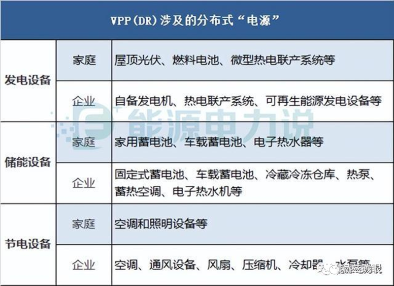 日本:將狹義上的VPP定義為直接并網(wǎng)的可再生能源發(fā)電設(shè)備和儲能裝置,而廣義上的VPP還包括用戶側(cè)的新型DR,但傳統(tǒng)DR則不包含在其中。VPP(DR)涉及的分布式“電源”主要包括如下三類。