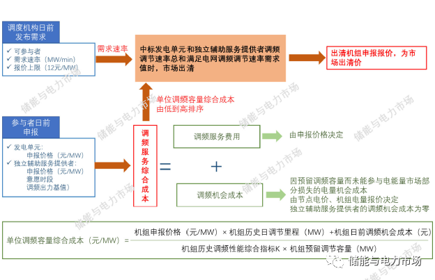 山東省調(diào)頻輔助服務(wù)競價提供服務(wù),市場基本規(guī)則如下圖所示。儲能與電力市場也曾經(jīng)對現(xiàn)貨市場下的山東調(diào)頻輔助服務(wù)的市場規(guī)則做過詳細(xì)的分析,可參照文章: