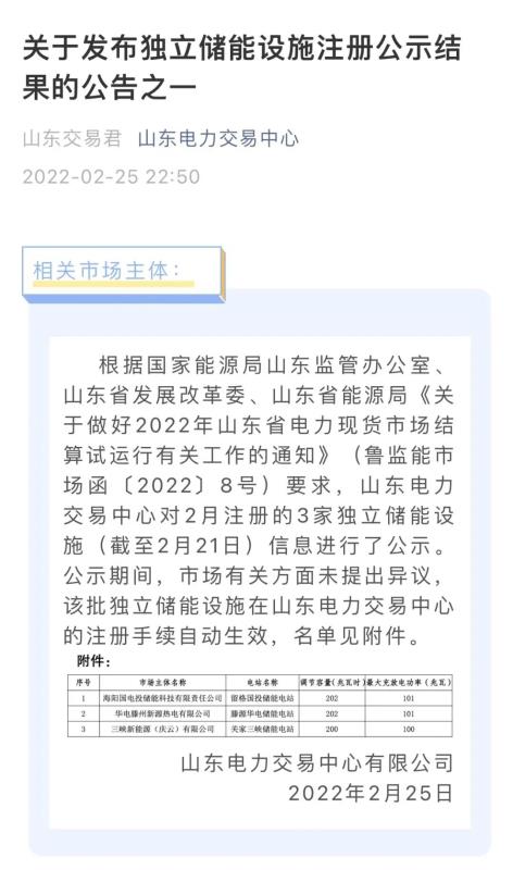 2月27日上午11時(shí),滕源華電儲(chǔ)能電站在山東電力現(xiàn)貨交易平臺(tái)成功提交日前電能量申報(bào)數(shù)據(jù),標(biāo)志著該儲(chǔ)能電站成為全國首家參與電力現(xiàn)貨交易的獨(dú)立儲(chǔ)能設(shè)施。