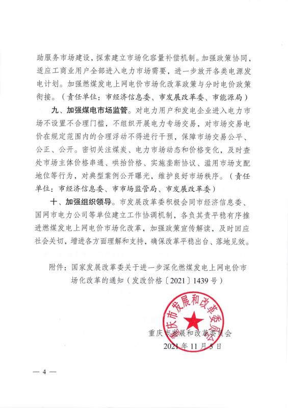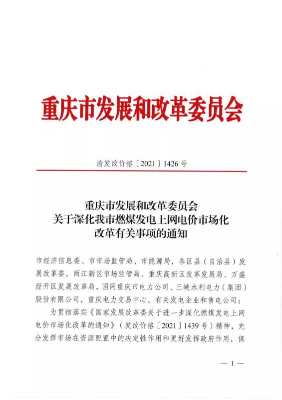 重慶:深化燃煤發(fā)電上網(wǎng)電價(jià)市場(chǎng)化改革