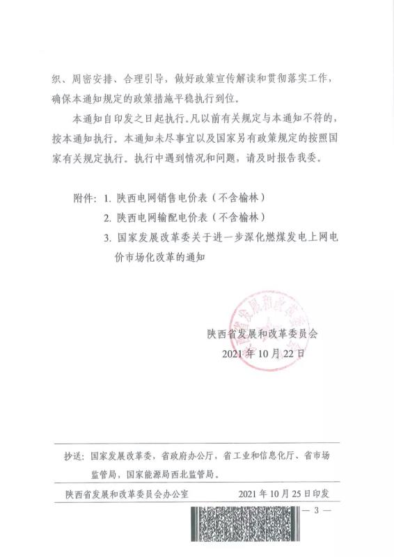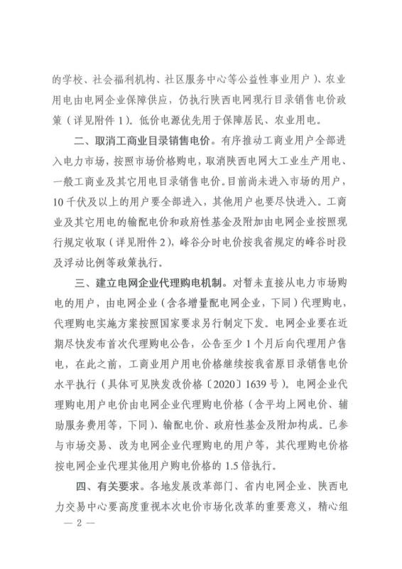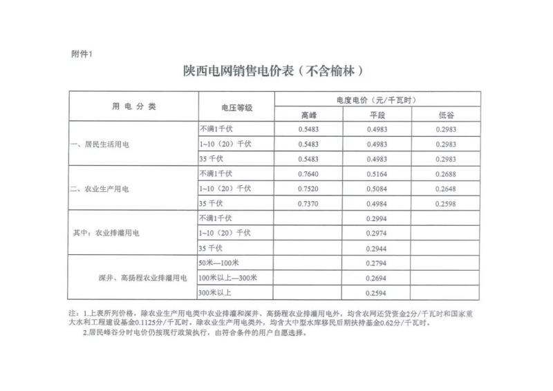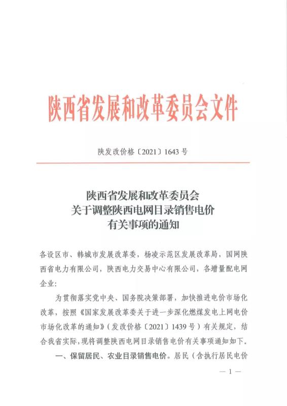 陜西:關(guān)于調(diào)整陜西電網(wǎng)目錄銷售電價(jià)有關(guān)事項(xiàng)的通知