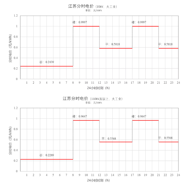 根據(jù)6月11日的發(fā)文,以35kV、110kV為例,執(zhí)行的分時電價如下: