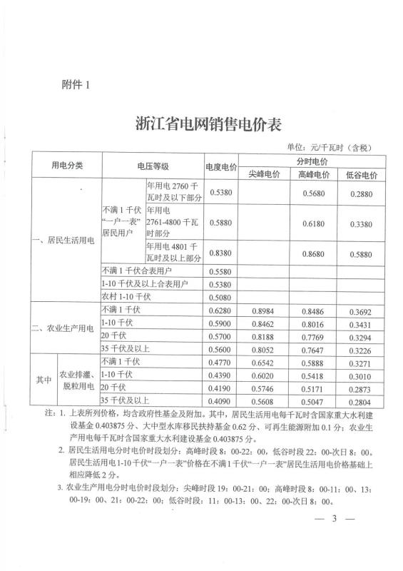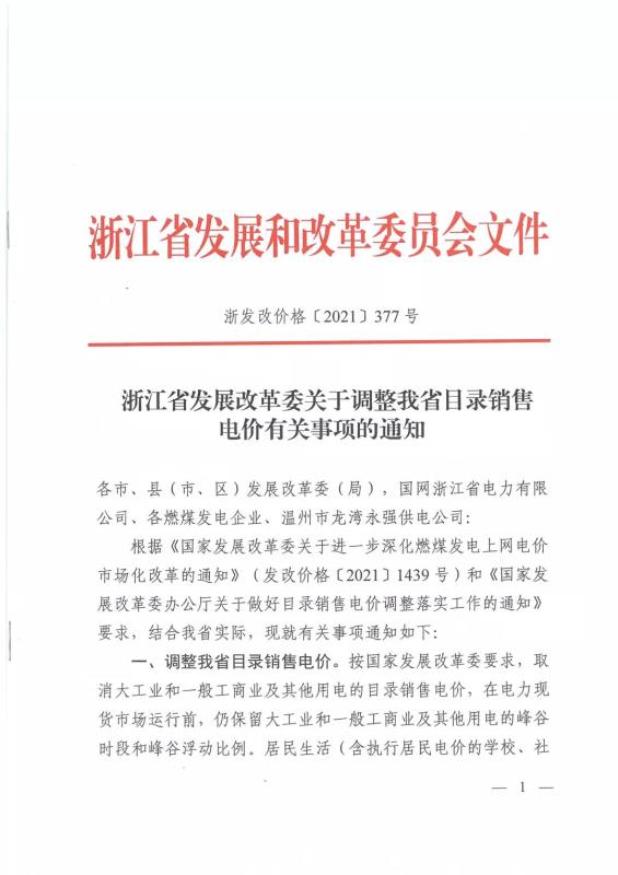 浙江:關(guān)于調(diào)整我省目錄銷售電價(jià)有關(guān)事項(xiàng)的通知