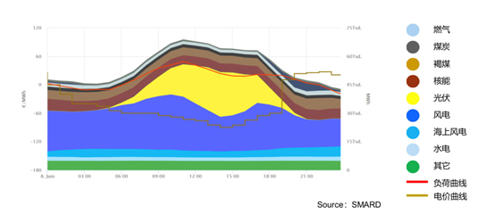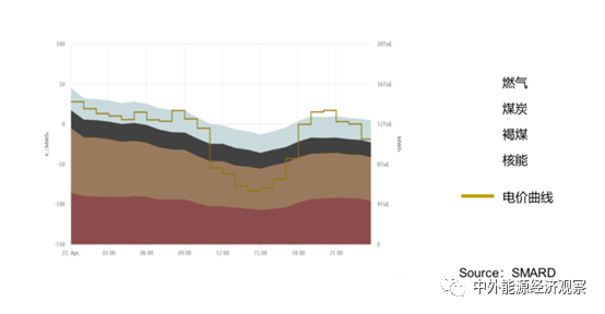 歐洲尤其是德國隨著可再生能源比例增加,現(xiàn)貨市場上出現(xiàn)負電價的時候越來越多,主要出現(xiàn)在風(fēng)電和光伏發(fā)電同時達到最高峰的時候,也就是發(fā)電過剩的時候。