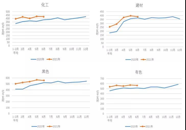 1-6月,化工行業(yè)用電量2475億千瓦時,同比增長12.0%,增速比上年同期提高15.2個百分點;建材行業(yè)用電量1967億千瓦時,同比增長19.8%,增速比上年同期提高24.2個百分點;黑色金屬冶煉行業(yè)用電量3199億千瓦時,同比增長16.1%,增速比上年同期提高16.5個百分點;有色金屬冶煉行業(yè)用電量3327億千瓦時,同比增長9.6%,增速比上年同期提高7.5個百分點。