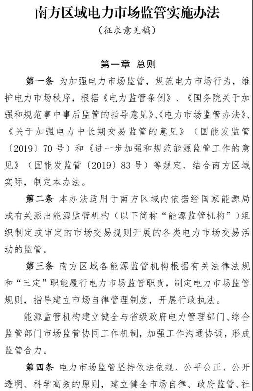 《南方區(qū)域電力市場監(jiān)管實施辦法》公開征求意見
