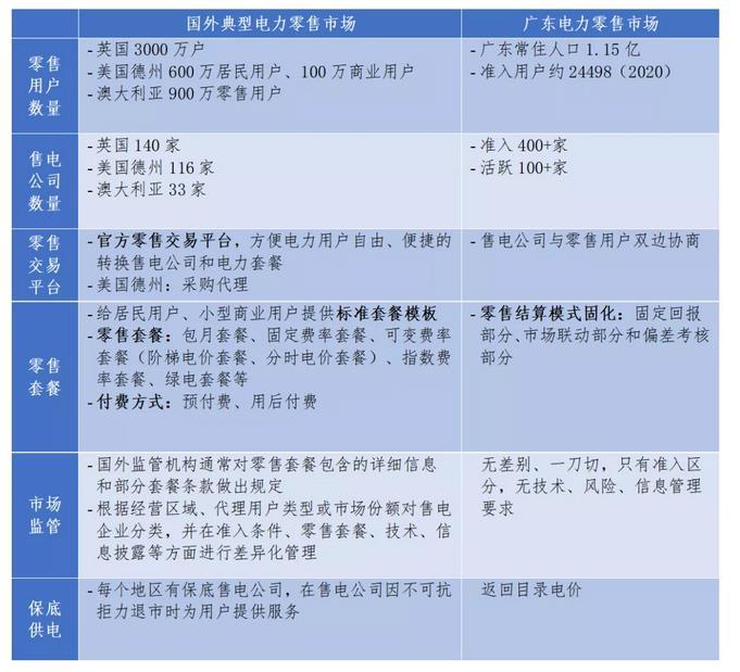在交易方式方面,國外的零售市場普遍有官方零售交易平臺,便于小用戶購電,目前廣東尚未建成零售交易平臺。