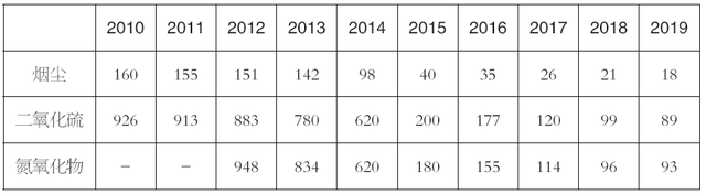 表9 2010~2019年電力行業(yè)排放總量情況(單位:萬(wàn)噸)