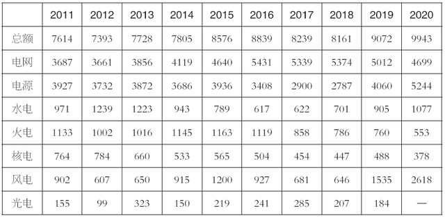 表7 2011~2020年全國(guó)電力投資情況(單位:億元)