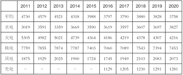 表5 2011~2020年發(fā)電設(shè)備利用小時(shí)數(shù)(單位:小時(shí))