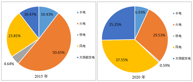 圖8 2015年與2020年新增電力裝機(jī)結(jié)構(gòu)對(duì)比