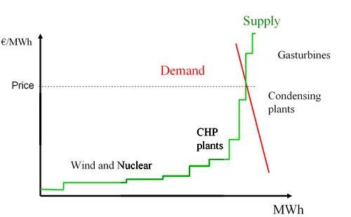 德州的電力市場是一個相當(dāng)?shù)湫偷摹癊nergy only”的電力市場,也就是說,德州沒有電力容量市場,即沒有除了買電賣電的能量市場以外的機制去保證電廠建的足夠多。在電力市場設(shè)計的問題上,“Energy-only” vs “Capacity market”一直是一個爭議問題。根據(jù)電力市場供需曲線的關(guān)系(如下圖),電力批發(fā)價格在需求高峰飆高。保證電力機組容量的充足性、建設(shè)足夠多的電廠一直是個復(fù)雜的問題。電廠建設(shè)跟不上需求增長,電力機組容量過低,就很容易發(fā)生批發(fā)市場價格極高的問題,帶來市場不確定的風(fēng)險。在極端情況下,就會成為人道主義災(zāi)難。