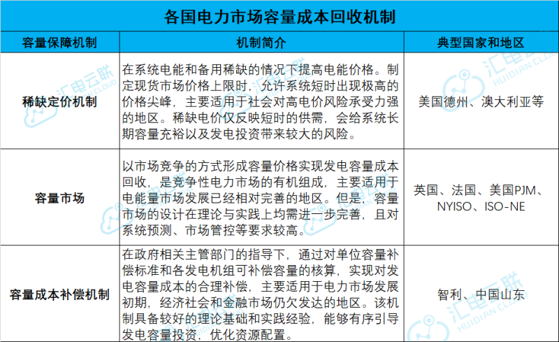根據(jù)國(guó)家發(fā)改委2020年《容量成本回收機(jī)制工作指引》,容量成本回收機(jī)制大體可歸納為稀缺定價(jià)機(jī)制、容量市場(chǎng)和容量成本補(bǔ)償機(jī)制三類(lèi)。各地區(qū)應(yīng)結(jié)合實(shí)際選擇適宜的容量成本回收機(jī)制,可通過(guò)建立容量成本補(bǔ)償機(jī)制起步。即我國(guó)在電力現(xiàn)貨市場(chǎng)建設(shè)第一階段,電力現(xiàn)貨試點(diǎn)配套容量成本回收機(jī)制,以容量補(bǔ)償機(jī)制為主要手段。