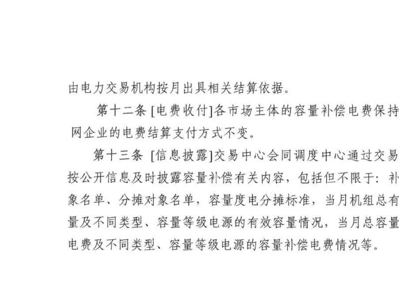 4.電費(fèi)收付:各市場(chǎng)主體的容量補(bǔ)償電費(fèi)保持與電網(wǎng)企業(yè)的電費(fèi)結(jié)算支付方式不變。