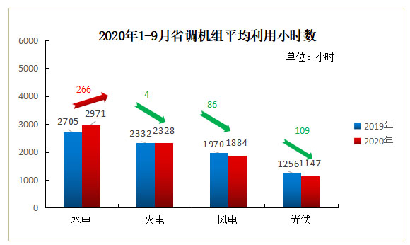 1~9月,全省發(fā)電平均利用小時(shí)數(shù)3075小時(shí),同比增加102小時(shí)。省調(diào)直調(diào)機(jī)組平均利用小時(shí)數(shù)2727小時(shí),同比增加173小時(shí)。其中,水電2971小時(shí),同比增加266小時(shí);火電2328小時(shí),同比減少4小時(shí);風(fēng)電1884小時(shí),同比減少86小時(shí);光伏1147小時(shí),同比減少109小時(shí)。