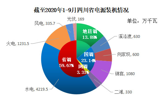 省內(nèi)新增電源速度持續(xù)放緩。截至9月末,四川全省裝機(jī)容量9980.83萬(wàn)千瓦,較年初增長(zhǎng)0.52%。其中國(guó)調(diào)機(jī)組裝機(jī)容量2310萬(wàn)千瓦;西南網(wǎng)調(diào)機(jī)組裝機(jī)容量330萬(wàn)千瓦;省調(diào)直調(diào)機(jī)組裝機(jī)容量5955.7萬(wàn)千瓦,其中,水電4219.5萬(wàn)千瓦,占比70.85%;火電1231.5萬(wàn)千瓦,占比20.68%;風(fēng)電335.7萬(wàn)千瓦,占比5.64%;光伏169.0萬(wàn)千瓦,占比2.83%。