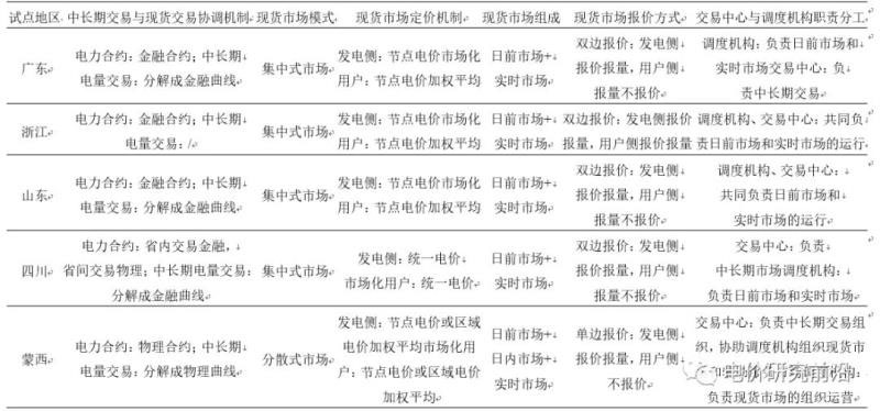 市場建設(shè)目標(biāo)方面,各試點(diǎn)地區(qū)的目標(biāo)可歸結(jié)為還原電力商品屬性、發(fā)現(xiàn)電力價格信號、賦予市場主體自主選擇權(quán)、促進(jìn)清潔能源消納等。調(diào)度方式方面,當(dāng)前各試點(diǎn)地區(qū)都采用集中調(diào)度的方式,由調(diào)度機(jī)構(gòu)統(tǒng)一確定機(jī)組組合和日發(fā)電計劃。