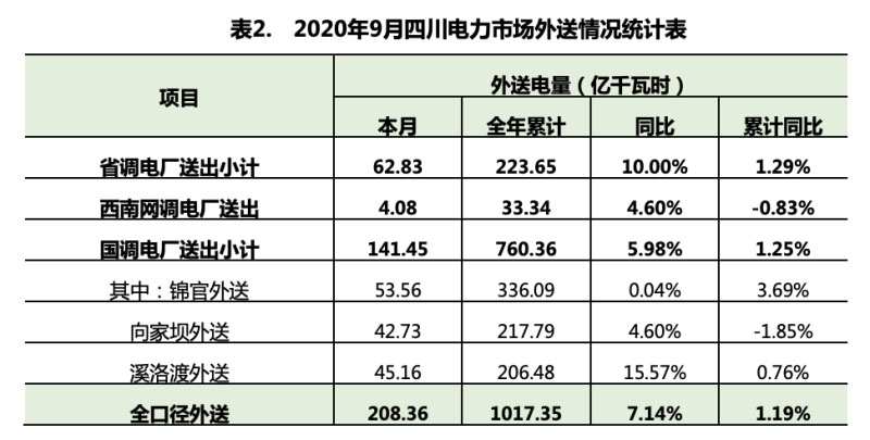 外送電情況:據(jù)快報, 9月全口徑外送電量208.36億千瓦時,同比增長7.14%。1~9月全口徑累計外送電量1017.35億千瓦時,同比增長1.19%,其中省調(diào)電廠送出223.65億千瓦時,同比增長1.29%。