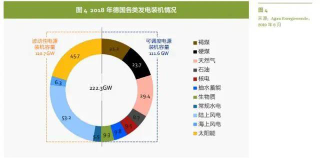 在德國(guó)火電、核電、抽水蓄能以及生物質(zhì)發(fā)電都被視為是可控電源。截至 2018 年底,德國(guó)可調(diào)度電源裝機(jī)容量達(dá)到 1.1 億千瓦,占全國(guó)總裝機(jī)容量的 50.2%。其中火電機(jī)組和抽水蓄能是電源側(cè)主要的靈活性來源,抽水蓄能將在后續(xù)儲(chǔ)能章節(jié)進(jìn)行介紹。