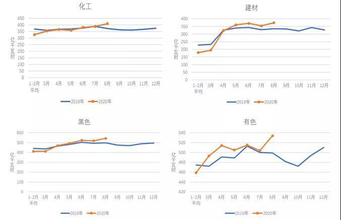 圖4 2019、2020年重點(diǎn)行業(yè)分月用電量情況