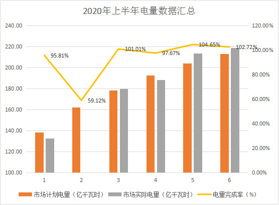 圖1 2020年上半年市場電量完成情況