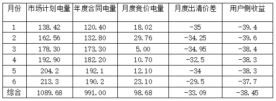 上半年月度競價交易總電量占比不到10%,價差相對穩(wěn)定,總體上(絕對值數(shù)據(jù))呈下降態(tài)勢,從1月份的-35厘/千瓦時到6月份的-29.5厘/千瓦時,與市場預(yù)期基本一致。從上半年的數(shù)據(jù)來看,綜合長協(xié)和月度競價情況,電廠和用戶側(cè)度電價差基本上穩(wěn)定在平均值(-46.41厘/千瓦時和-38.45厘/千瓦時)附近,雖然2月份電廠讓利幅度較大,超過50厘/千瓦時,原因主要是電廠偏差電量考核所致,用戶側(cè)受購售電合同價格已固化價差收益,所以收益未有明顯變化。