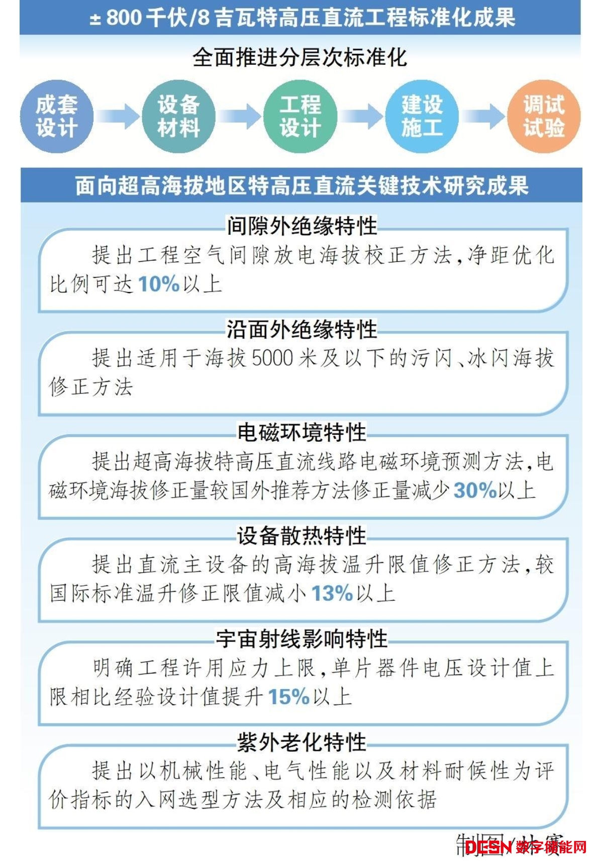 “±800千伏/8吉瓦特高壓直流標(biāo)準(zhǔn)化”技術(shù)成果全面總結(jié)16回特高壓直流工程建設(shè)經(jīng)驗(yàn),形成了一套涵蓋成套設(shè)計(jì)、設(shè)備材料、工程設(shè)計(jì)、建設(shè)施工、調(diào)試試驗(yàn)建設(shè)全流程的標(biāo)準(zhǔn)化技術(shù)方案,可有效應(yīng)對(duì)工程面臨的資源配置、技術(shù)創(chuàng)新和安全質(zhì)量等方面的挑戰(zhàn)。