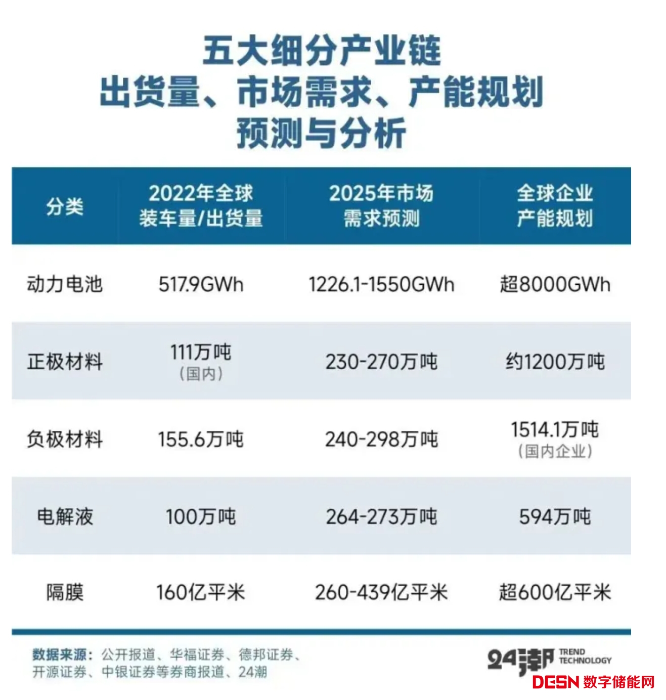 另據(jù)24潮產(chǎn)業(yè)研究院(TTIR)此前統(tǒng)計(jì)數(shù)據(jù)顯示:截止目前,在動(dòng)力電池、儲(chǔ)能電池、正極材料、負(fù)極材料、電解液與鋰電隔膜這6大核心賽道上,已知的企業(yè)產(chǎn)能規(guī)劃均遠(yuǎn)超2025年第三方研究機(jī)構(gòu)對(duì)市場需求的預(yù)測上限,未來三年內(nèi)產(chǎn)業(yè)大洗牌已經(jīng)不可避免。