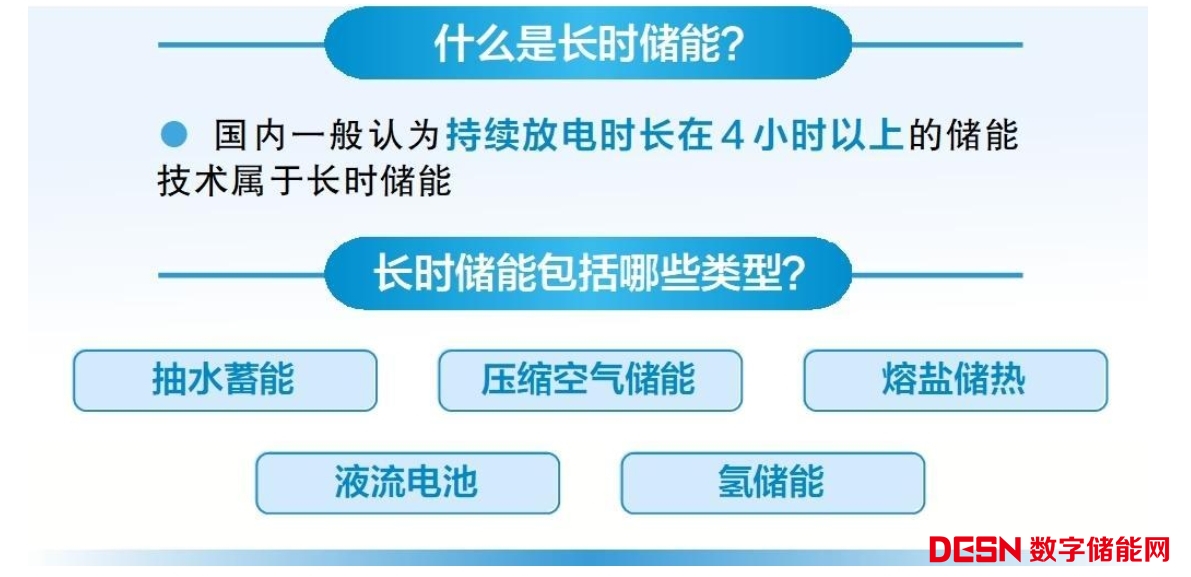 目前,國內(nèi)外對于長時(shí)儲能的放電時(shí)長尚未統(tǒng)一定義,國內(nèi)一般認(rèn)為持續(xù)放電時(shí)長在4小時(shí)以上的技術(shù)屬于長時(shí)儲能,主要包括抽水蓄能、壓縮空氣儲能、熔鹽儲熱、液流電池和氫儲能等5種類型。發(fā)展長時(shí)儲能對我國保障能源安全、推動能源綠色低碳轉(zhuǎn)型、促進(jìn)能源高質(zhì)量發(fā)展具有重要意義。