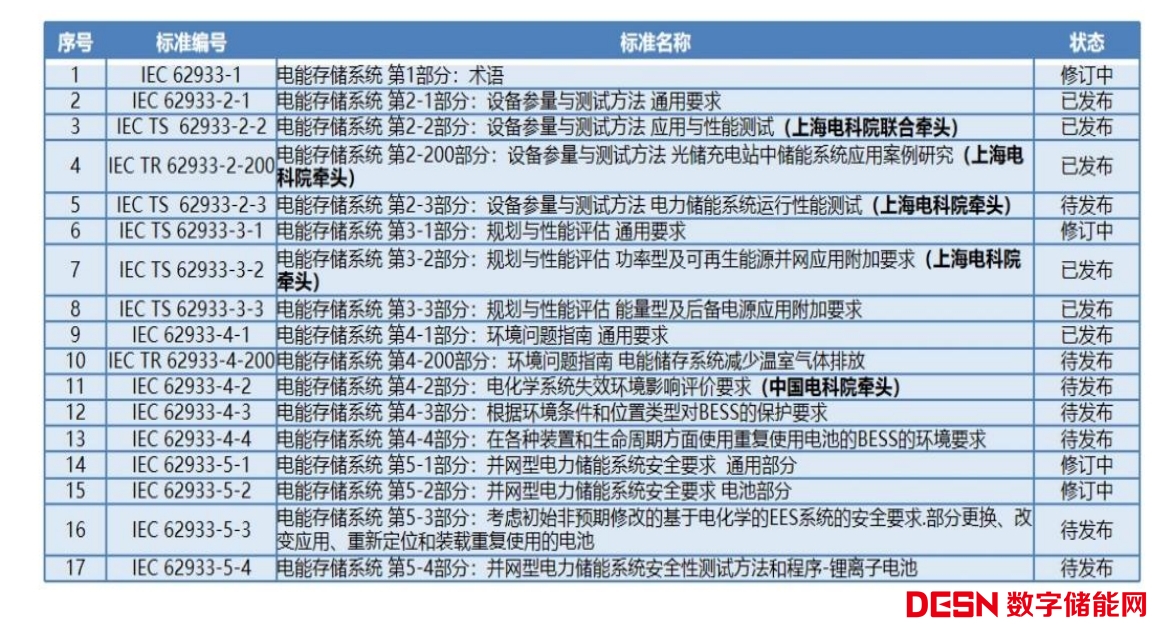 截止目前,IEC TC120立項21項標(biāo)準(4項修編標(biāo)準各算2項),其中10項標(biāo)準已發(fā)布。由中國牽頭的標(biāo)準已發(fā)布3項,在編2項。