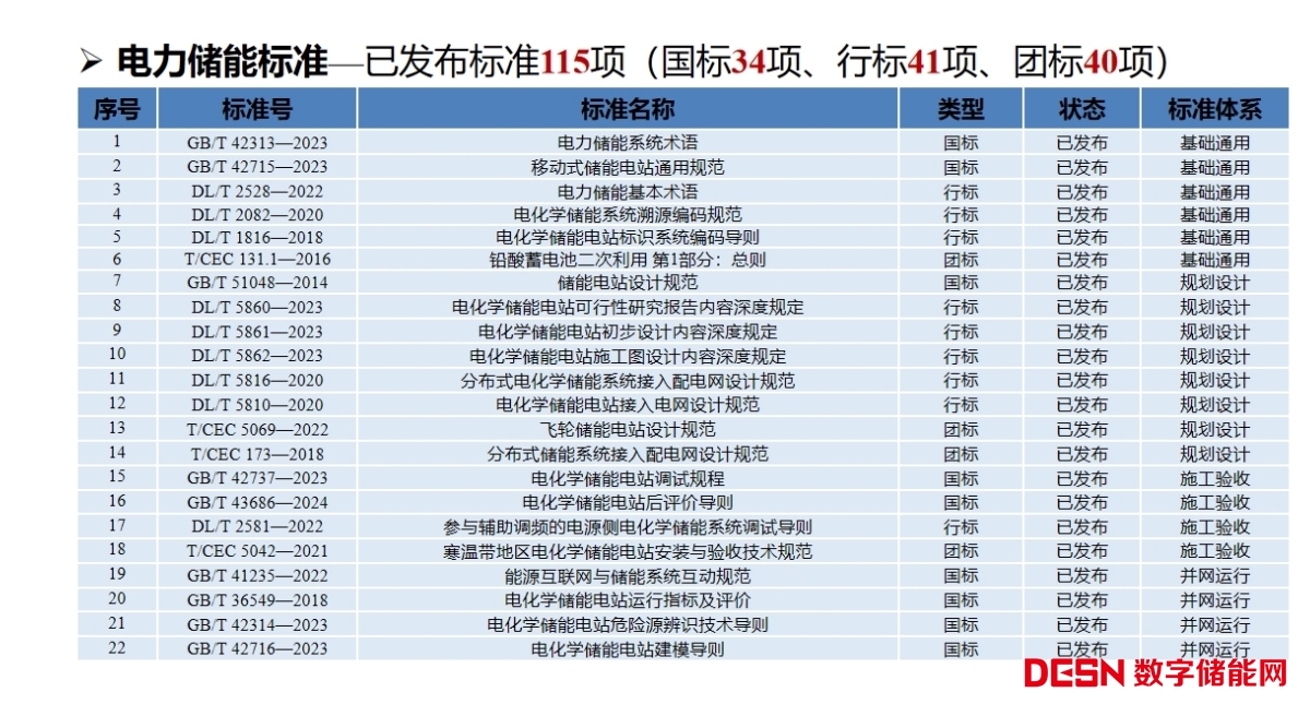 我國從2010年開始開展電力儲能標(biāo)準的制定。目前國家和行業(yè)標(biāo)準涵蓋電化學(xué)儲能和物理儲能,初步搭建體系,填補了我國儲能標(biāo)準的空白。