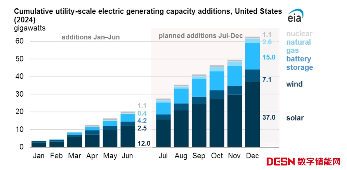 根據報告的最新數據,預計美國今年下半年將再部署42.6GW發(fā)電設施。