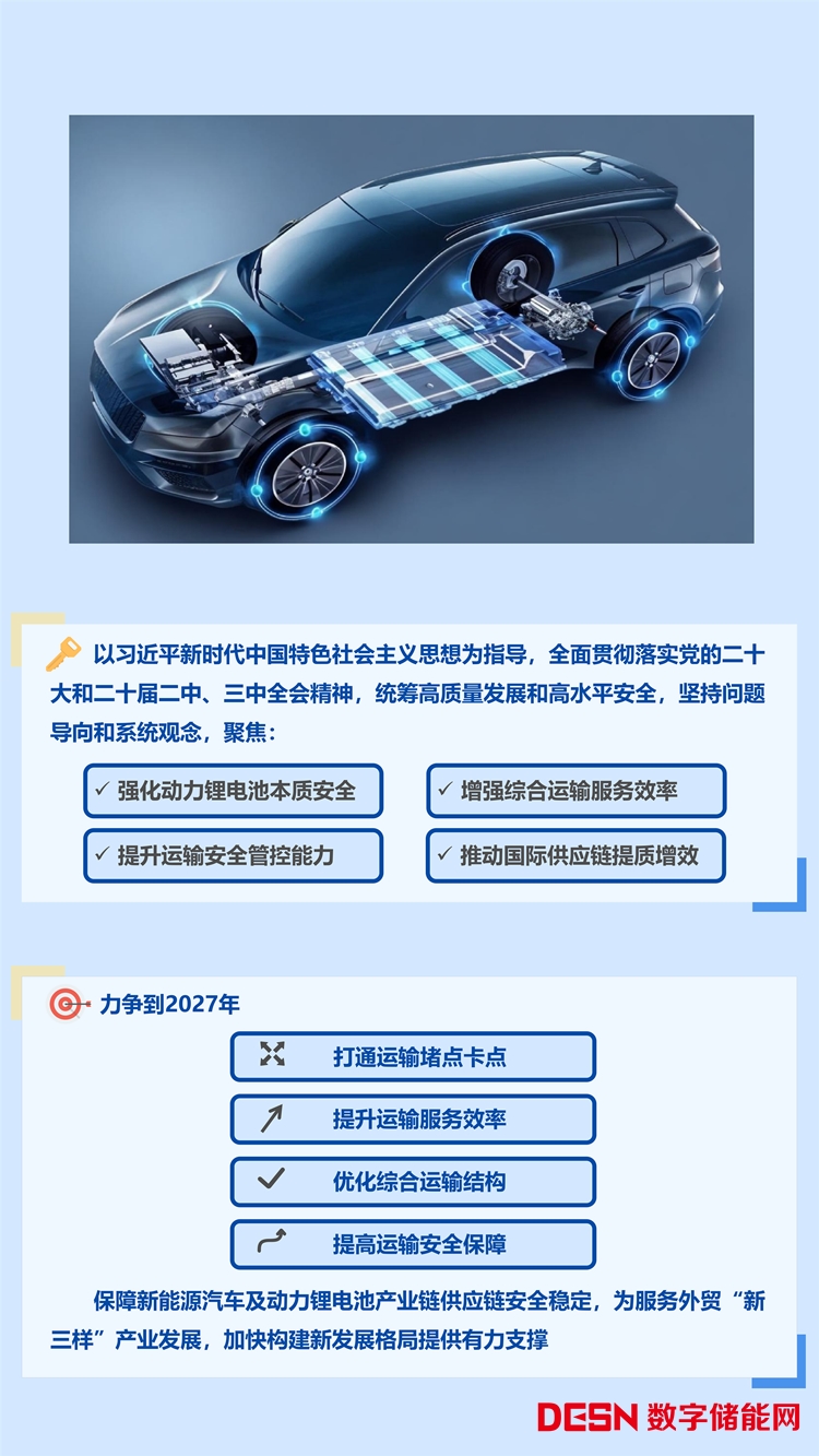中國儲能網(wǎng)訊:動力鋰電池是支撐新能源汽車產(chǎn)業(yè)高質(zhì)量發(fā)展的關(guān)鍵。為深入貫徹落實黨中央、國務(wù)院決策部署,加快提升新能源汽車動力鋰電池運輸服務(wù)和安全保障能力,促進新能源汽車動力鋰電池安全、便捷、高效運輸,切實增強新能源汽車和動力鋰電池產(chǎn)業(yè)競爭力,更好服務(wù)構(gòu)建現(xiàn)代化產(chǎn)業(yè)體系,助力發(fā)展新質(zhì)生產(chǎn)力,9月14日,交通運輸部會同工業(yè)和信息化部、公安部、商務(wù)部、應(yīng)急管理部、市場監(jiān)管總局、國家鐵路局、中國民用航空局、國家消防救援局、中國國家鐵路集團有限公司等9個部門和單位聯(lián)合印發(fā)《關(guān)于加快提升新能源汽車動力鋰電池運輸服務(wù)和安全保障能力的若干措施》。