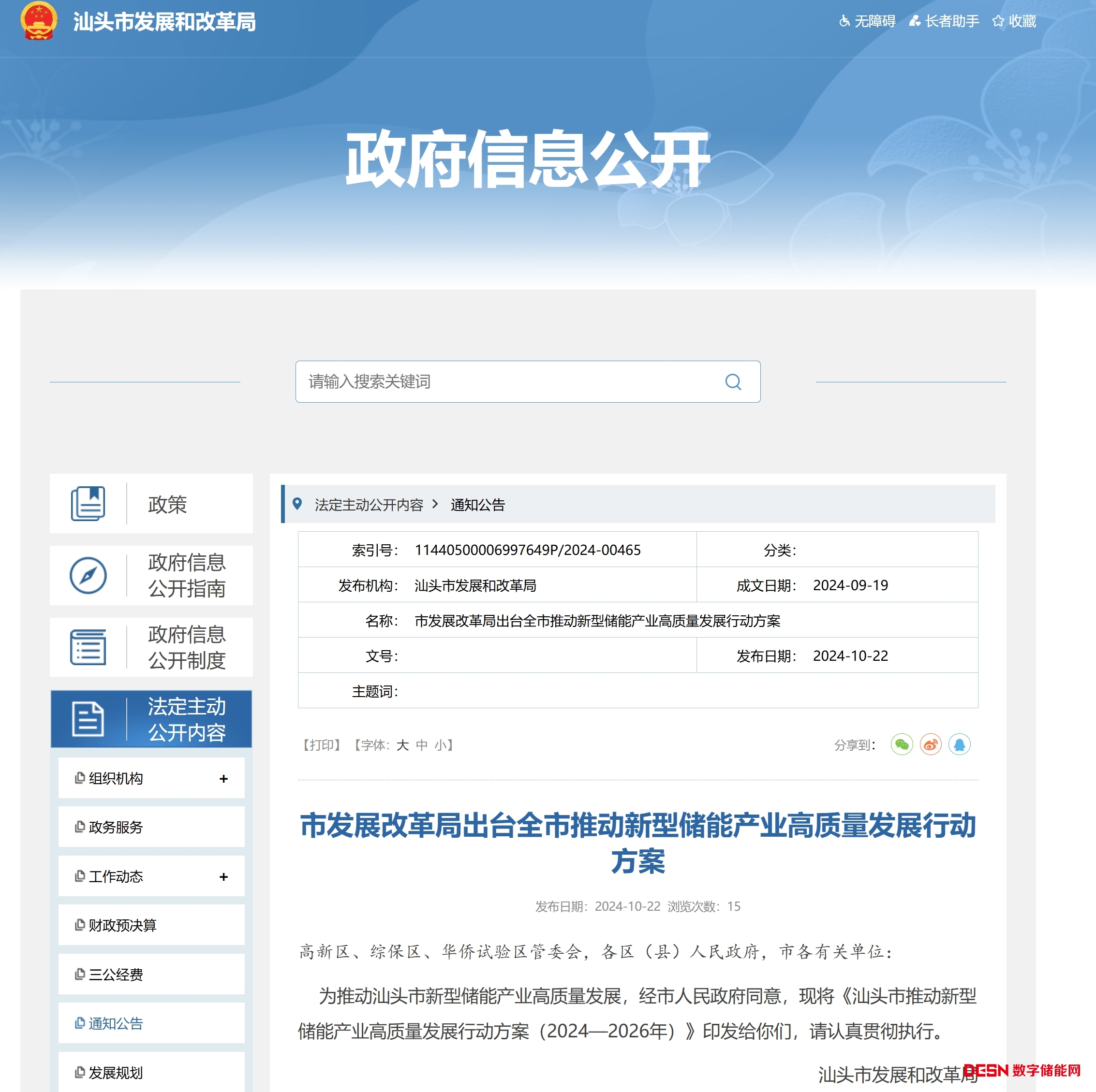 為推動汕頭市新型儲能產業(yè)高質量發(fā)展,經市人民政府同意,現(xiàn)將《汕頭市推動新型儲能產業(yè)高質量發(fā)展行動方案(2024—2026年)》印發(fā)給你們,請認真貫徹執(zhí)行。