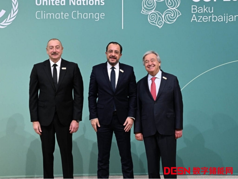 塞浦路斯總統(tǒng)尼科斯··赫里斯托祖利季斯(中)在阿塞拜疆舉行的COP29氣候大會上與聯(lián)合國秘書長安東尼奧·古特雷斯(右)合影