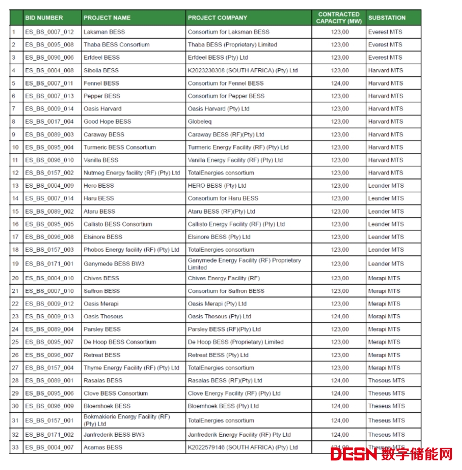 中國儲能網(wǎng)訊:據(jù)外媒報(bào)道,日前,南非電力和能源部對外公布了電池儲能獨(dú)立發(fā)電商采購計(jì)劃(BESIPPPP)第三輪競標(biāo)名單。