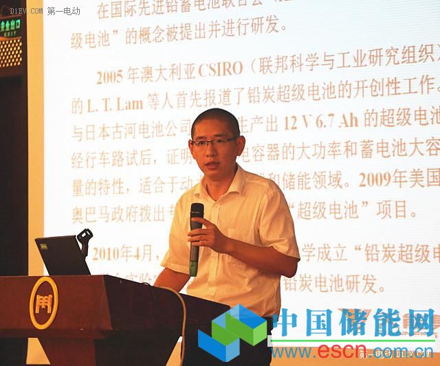 王謇首先對鉛炭電池作了簡短的介紹。在國際先進(jìn)鉛蓄電池聯(lián)合會(ALABC)支持下,“超級電池”的概念被提出并進(jìn)行研發(fā)。2005年澳大利亞聯(lián)邦科學(xué)與工業(yè)研究組織(CSIRO)的L.T.Lam等人首先報道了鉛炭超級電池的開創(chuàng)性工作。與日本古河電池公司合作,生產(chǎn)出12V 6.7Ah的超級電池。經(jīng)行車路試后,證明它具備電容器的大功率和蓄電池大容量的特性,適合于動力電池領(lǐng)域和儲能領(lǐng)域。2009年美國奧巴馬政府撥出專款支持發(fā)展鉛酸“超級電池”項目。2010年4月,天能集團(tuán)和哈爾濱工業(yè)大學(xué)成立“鉛炭超級電池”聯(lián)合實驗室,在國內(nèi)率先開始鉛炭電池研發(fā)。