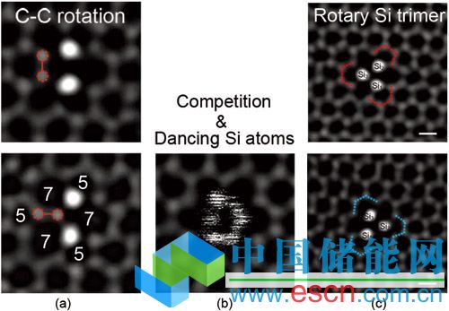 中國儲能網(wǎng)訊:最近,中國科學院金屬研究所沈陽材料科學國家(聯(lián)合)實驗室固體原子像研究部楊志卿副研究員、先進炭材料研究部尹利長副研究員等與美國橡樹嶺國家實驗室研究人員合作,首先利用像差校正Z襯度電子顯微學成像觀察到了石墨烯拓撲缺陷結構的動態(tài)演變、以及單個Si原子與拓撲缺陷的動態(tài)交互并最終摻雜到石墨烯的微觀過程,然后采用第一性原理計算揭示了這一原子結構演化的微觀機理。直接觀察并理解單個原子及其與周圍介質材料動態(tài)交互行為有助于人們認識物質結構的微觀演變并預測新結構的形成,對于納米科學技術的發(fā)展具有重要意義。