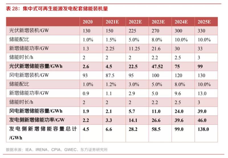 2. 發(fā)電側(cè):集中式可再生能源儲(chǔ)能配比拉動(dòng)裝機(jī)需求